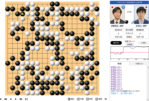 大和ハウス杯第61期十段戦挑戦手合五番勝負第4局 終局図