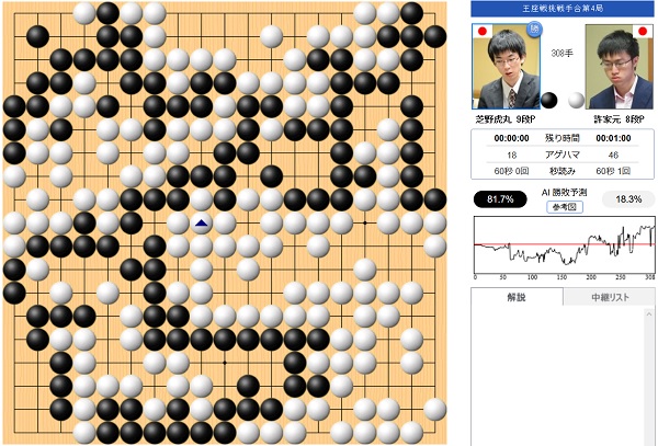 第68期王座戦挑戦手合五番勝負第4局 終局図