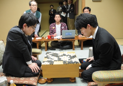 山下(左)の2年ぶりの本因坊戦挑戦手合出場は成らなかった