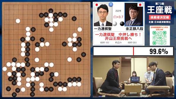 井山裕太王座への挑戦権を争う、第73期王座戦(主催:日本経済新聞社/日本棋院/関西棋院)の挑戦者決定戦【一力遼棋聖 vs 余正麒八段】が9月17日(水)に日本棋院東京本院で行われ、一力棋聖が白番中押し勝ちをおさめ王座戦挑戦手合へと進んだ。