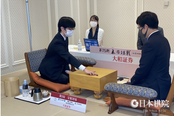 9連覇を目指す本因坊文裕(井山裕太九段)に芝野虎丸名人が挑戦する第75期本因坊戦挑戦手合七番勝負(主催:毎日新聞社)第3局が6月22日(月)に兵庫県宝塚市の「宝塚ホテル」で開始した。持ち時間は各8時間。1日目は本日夕刻に封じ手による打ち掛けとなり23日(火)に2日目が打ち継がれる。