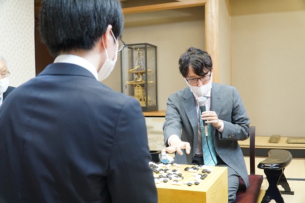 - 「序盤は研究した事のある配石だったが、黒29のツケはほとんど考えたことのない手。封じ手の時点では打ちにくい碁にしてしまったかなと思っていた。 2日目の上辺の打ち込みの辺りでは、右下隅のコウを考えながら打っていたが黒厚い形だったので仕掛け所をみていた。 (最終局は)かなり大きな対局にはなるが、普段通り戦えたらと思う」