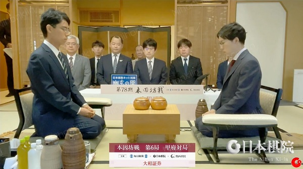 本因坊12連覇を目指す本因坊文裕(井山裕太)に一力遼棋聖が挑戦する 第78期本因坊戦挑戦手合七番勝負 (主催:毎日新聞社・日本棋院・関西棋院)第6局が山梨県甲府市「常磐ホテル」で定刻9時に立会人の山下敬吾九段に促されて一力の先番で対局が開始した。
