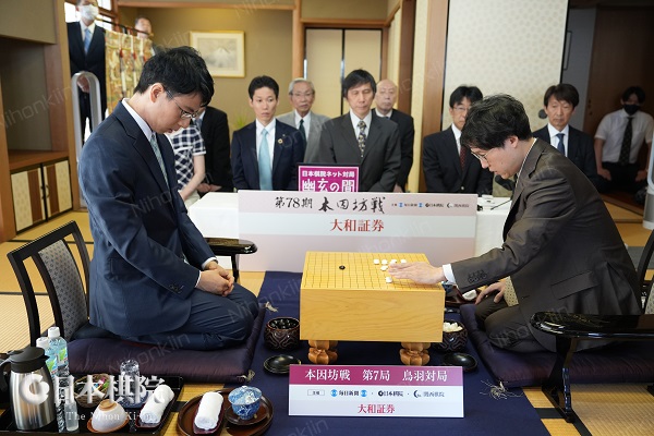 本因坊12連覇を目指す本因坊文裕(井山裕太)に一力遼棋聖が挑戦する 第78期本因坊戦挑戦手合七番勝負 (主催:毎日新聞社・日本棋院・関西棋院)第7局が三重県鳥羽市「戸田家」で定刻9時に立会人の王銘琬九段に促されて開始した。最終局は1局目同様にニギリが行われ文裕の先番となった。
