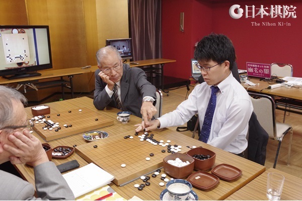 1日目は、17時30分に高尾が封じ手をして、打ち掛けになった。1日目の消費時間は黒が4時間5分、白が3時間25分。3日(火)の朝9時からに2日目が打ち継がれる。