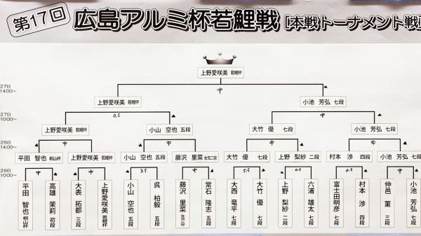 30歳以下・七段以下の棋士で争われる第17回広島アルミ杯・若鯉戦本戦トーナメント