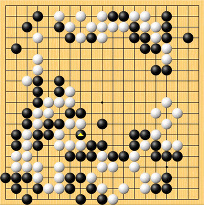 | 【十段戦挑戦者決定戦 終局図 】 黒 : 伊田篤史八段 白 : 小林覚九段 黒番中押し勝ち |