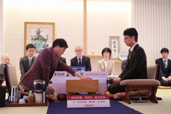本因坊12連覇を目指す本因坊文裕(井山裕太)に一力遼棋聖が挑戦する 第78期本因坊戦挑戦手合七番勝負 (主催:毎日新聞社・日本棋院・関西棋院)第3局が東京都千代田区「神田明神」で定刻9時に立会人の24世本因坊秀芳に促されて一力の先番で対局が開始した。