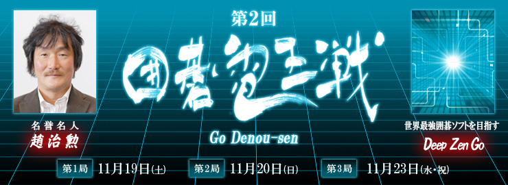 趙治勲名誉名人に和製囲碁AIソフト「DeepZenGo」が挑戦する第2回囲碁電王戦【主催:株式会社ドワンゴ】の第3局が11月23日(水・祝)の13時から日本棋院東京本院で行われます。