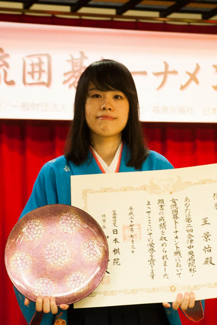 第2回会津中央病院杯・女流囲碁トーナメント戦 【協賛:一般財団法人温知会】 の決勝が、 7月2日(木)、3日(金)の両日、福島県会津若松市の「今昔亭」で行なわれ、王景怡二段 が謝依旻女流名人に265手まで白番1目半勝ちをおさめ初タイトルを獲得した。