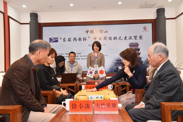 左:徐奉洙九段、尹泳珉三段ペア(韓国) 右:大竹名誉碁聖、吉田八段ペア