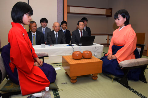 Tweet 2014年06月26日 棋戦情報 第1回会津中央病院杯・女流囲碁トーナメント戦 【協賛:一般財団法人温知会】 の決勝が、6/26(木)に福島県会津若松市の 「今昔亭」で始まった。 本対局は二日制で翌27(金)にも行われる。 ■本戦決勝 奥田あや三段―藤沢里菜二段 対局開始の様子 奥田あや三段 藤沢里菜二段 第1回会津中央病院杯・女流囲碁トーナメント戦は日本棋院ネット対局 「幽玄の間」で中継しております。どうぞお楽しみください! Tweet 棋戦カテゴリのトップページはこちら 一覧に戻る 前の記事藤沢が45手目を封じる【会津中央病院杯決勝】 次の記事藤沢の史上最年少封じ手は?【会津中央病院杯決勝】