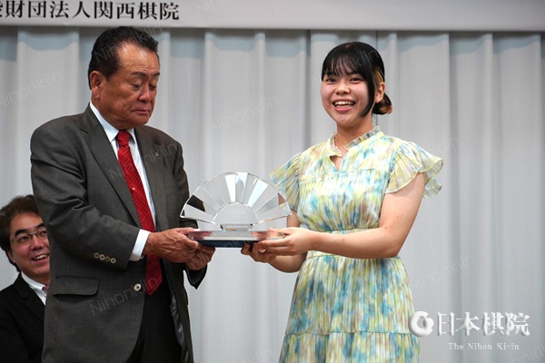 上野梨紗女流棋聖が黒番5目半勝ちをおさめ扇興杯初優勝となった。