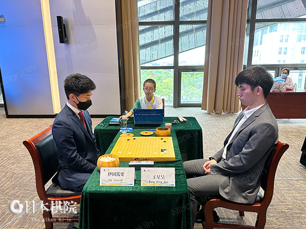 △ 王星昊八段(中国) 中押し 伊田篤史九段(日本)