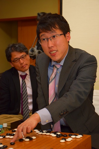 井山棋聖「序盤は(韓国の対局で)見たことがあって一度チャンスがあればやってみたかった。(右下隅)ツケ(黒73)たのは何か動いていかないと成算がないと思ったからです。中央の黒がつながって右上隅が安泰した時に地合でいけるかなと思いました。(奪取まであと1勝となりましたが)五番勝負は長いです。自分らしく打てていると思いますので精一杯頑張ります」