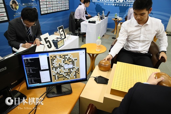 先に勝敗がついたのは、芈昱廷九段(中国)-DeepZenGo(囲碁AI)戦。283手まで芈がDeepZenGoに黒番中押し勝ちをおさめた。終局時間は16時30分。持時間3時間のうち残り時間は黒番の芈が5分、白番のDeepZenGoが27分だった。