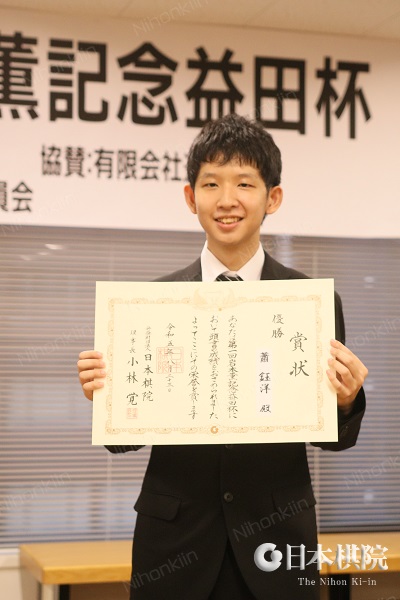 18歳以下(2023年4月1日現在)かつ二段以下の日本棋院東京本院所属の棋士・院生16名によるリーグ戦、第1回岩本薫記念益田杯(主催:日本棋院、後援:益田市 益田市教育委員会、協賛:有限会社 道栄商事)の3・4回戦が8月23日(水)に東京都千代田区「日本棋院東京本院」で行われ、14時開始の決勝で蕭鈺洋初段が白番中押し勝ちで重川明司初段を下して優勝となった。