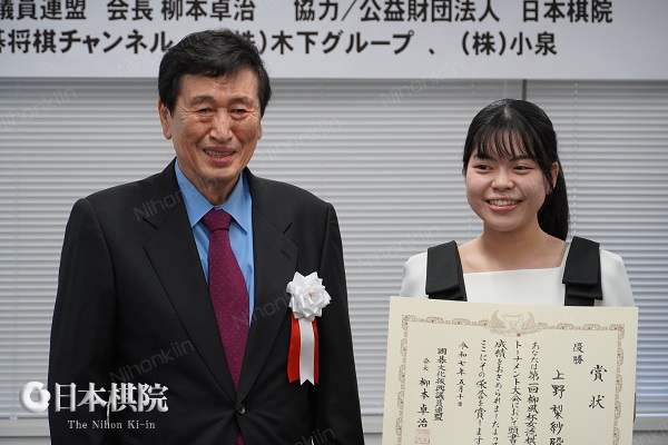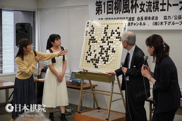 第1回柳風杯女流棋士トーナメント大会(主催:囲碁文化振興議員連盟 ※会長:柳本卓治、協力:公益財団法人 日本棋院、協賛:株式会社 囲碁・将棋チャンネル、木下グループ※『碁盤斬り』製作者)の3回戦・準決勝・決勝が5月10日(土)にが日本棋院東京本院で行われた。3回戦、準決勝を突破し、決勝に駒を進めたのは上野梨紗女流棋聖と謝依旻七段。決勝は落ち着いた打ち回しを見せた上野が謝に白番8目半勝ちをおさめ、優勝を飾った。