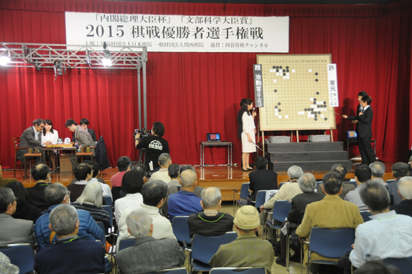 2015年にタイトルを獲得した全タイトルホルダーとファン投票棋士により争う、「内閣総理大臣杯」「文部科学大臣賞」2015年棋戦優勝者選手権戦の準決勝と決勝戦が3月19日に東京・市ヶ谷の日本棋院会館で行われた。