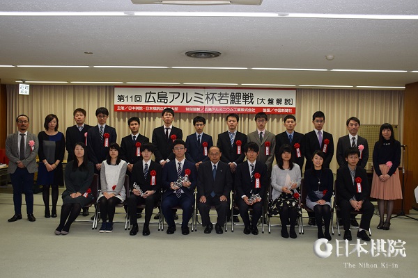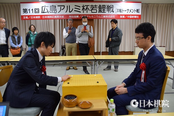 若手棋士の登竜門・第11回広島アルミ杯・若鯉戦本戦トーナメント(特別協賛:広島アルミニウム工業)は11月27日に広島市中区の中国新聞ビルで準決勝と決勝戦が行われた。