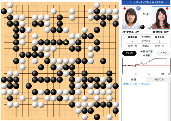 黒:上野愛咲美扇興杯 白:藤沢里菜女流四冠