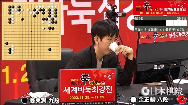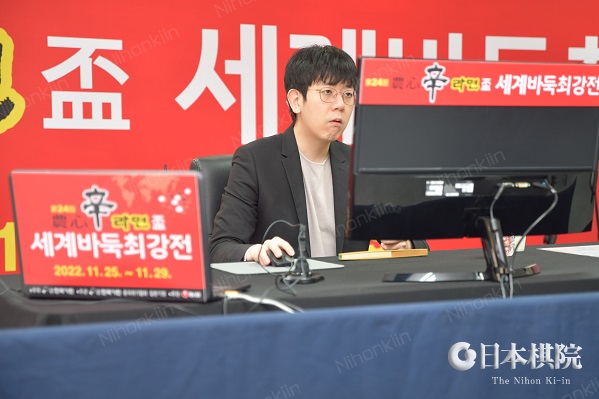 日本、韓国、中国の勝ち抜き団体戦、第24回農心辛ラーメン杯世界囲碁最強戦の第7戦が11月27日(日)に行われた。第7戦は韓国2番手の姜東潤九段と日本の4番手余正麒八段が対戦し、姜が244手までで黒番半目勝ちを収めた。