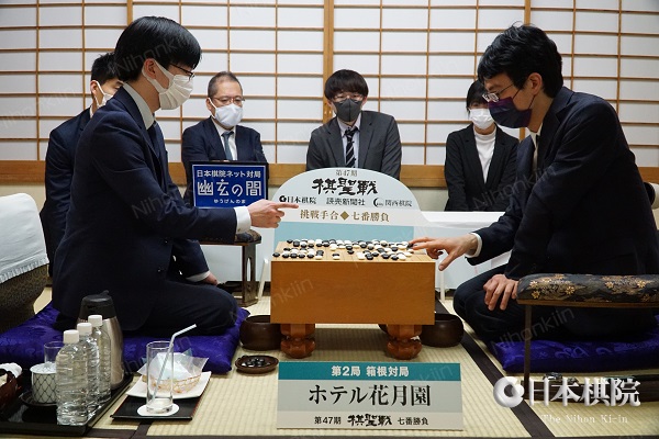 囲碁界最高位の棋戦「棋聖」連覇を目指す一力遼棋聖に芝野虎丸名人が挑戦する 第47期棋聖戦挑戦手合七番勝負 (主催:読売新聞社・日本棋院・関西棋院)第2局が1月20日(金)・21日(土)にホテル花月園で打たれ、芝野が白番中押し勝ちをおさめ1勝1敗となった。