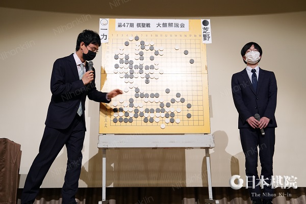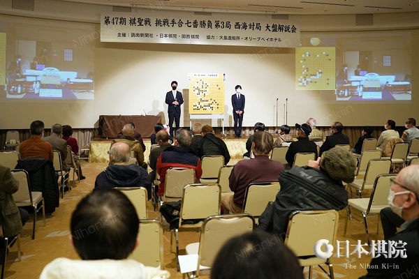 囲碁界最高位の棋戦「棋聖」連覇を目指す一力遼棋聖に芝野虎丸名人が挑戦する 第47期棋聖戦挑戦手合七番勝負 (主催:読売新聞社・日本棋院・関西棋院)第3局が2月3日(金)・4日(土)にオリーブベイホテルで打たれ、一力が白番中押し勝ちをおさめ2勝1敗となった。
