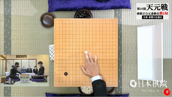 連覇を目指す関航太郎天元に伊田篤史九段が挑戦する 第48期天元戦挑戦手合五番勝負(主催:新聞三社連合・日本棋院・関西棋院)の第1局が10月3日(月)に三重県伊勢市「伊勢かぐらばリゾート 千の杜」で打たれ、黒番の関航太郎天元が中押し勝ちをおさめた。
