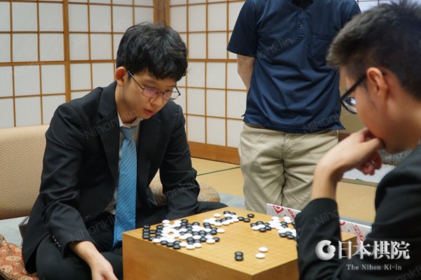 蕭鈺洋三段が黒番中押し勝ちをおさめシリーズ先勝とした。第2局は9月17日(水)に同所にて行われる。