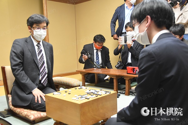 一力遼二冠(天元・碁聖)-大西竜平七段戦は一力が黒番中押し勝ち、
