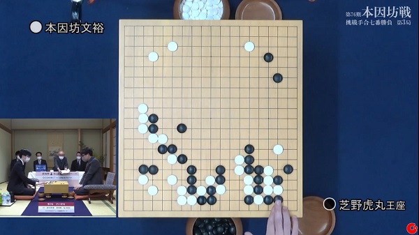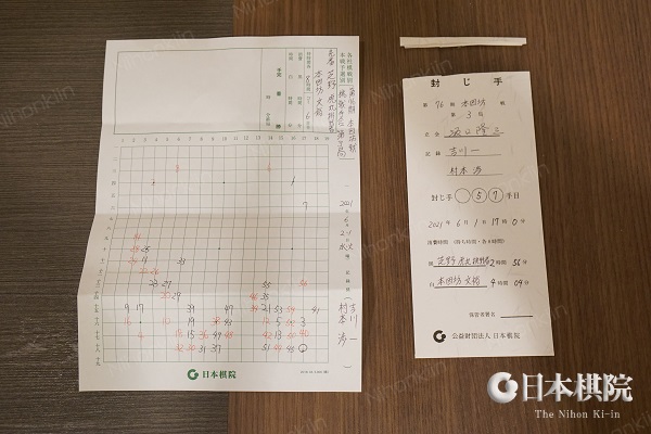 芝野の封じ手が読み上げられた。封じ手は17の十八「ハイ」。この対局は本日夜に終局の見込み。