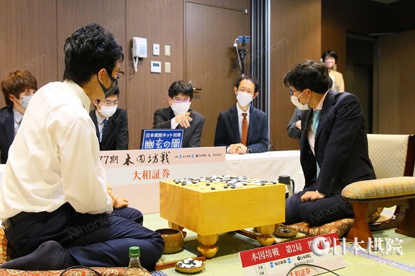 前人未到の本因坊11連覇を目指す本因坊文裕(井山裕太)に一力遼棋聖が挑戦する 第77期本因坊戦挑戦手合七番勝負 (主催:毎日新聞社・日本棋院・関西棋院)第2局が埼玉県熊谷市「熊谷ラグビー場」の特別室で打たれ、本因坊文裕が白番中押し勝ちをおさめ開幕2連勝とした。