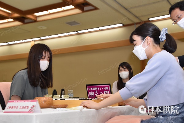 上野愛咲美女流棋聖が藤沢里菜女流立葵杯に挑戦する第9期会津中央病院・女流立葵杯(主催:日本棋院、後援:毎日新聞社、協賛:一般財団法人温知会、協力:関西棋院、福島民報社、日本棋院福島県支部連合会)の挑戦手合第2局が6月20日(月)に福島県会津若松市 「今昔亭」で打たれ、藤沢里菜女流立葵杯の中押し勝ちとなった。