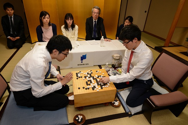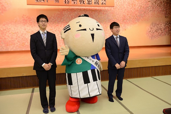 5連覇を狙う井山裕太碁聖に村川大介八段が挑戦する第41期碁聖戦五番勝負【主催:新聞囲碁連盟】の第1局が、6月25日に静岡県浜松市舘山寺温泉の「ホテル九重」で行われた。