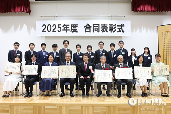 2025年度の第55回大倉喜七郎賞、第63回秀哉賞、第59回棋道賞および昇段者、新入段棋士の免状を授与する「2025年度 合同表彰式」が3月31日(火)に東京都千代田区の「日本棋院東京本院」で行われた。