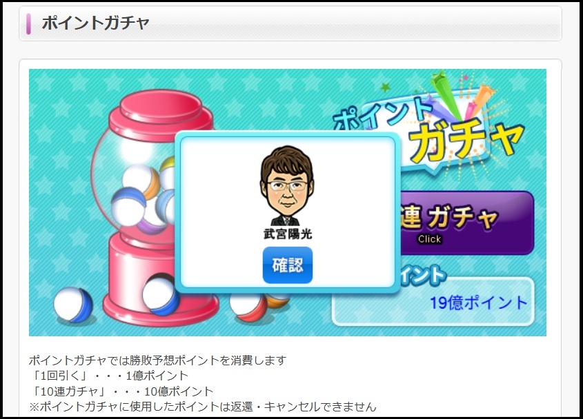 皆様ぜひ勝敗予想でポイントを増やして、ポイントガチャをお楽しみください!
