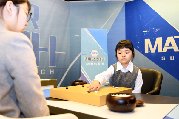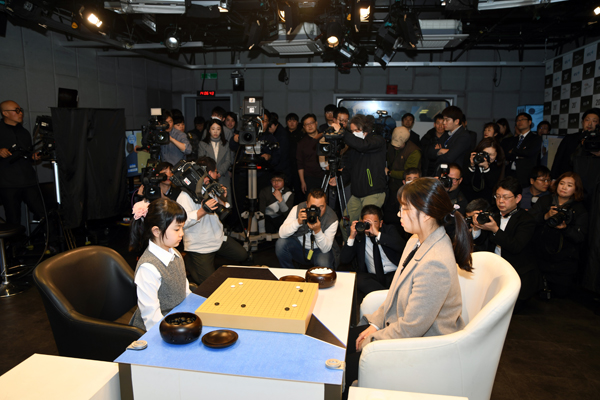 Tweet 2019年01月23日 その他 仲邑菫新初段と韓国の崔精九段による記念対局が、1月23日14時から韓国棋院で行われた。対局は仲邑新初段の定先、持ち時間各1時間で行われ、結果は崔精九段の白番中押し勝ちとなった。 仲邑菫新初段(右)、韓国の崔精九段相手に健闘するも女流世界トップクラスの壁は厚かった(写真提供:韓国棋院) 多くの報道陣が注目する中で対局が行われた(写真提供:韓国棋院) 対局の詳細については「週刊碁」およびネット対局「幽玄の間」にてお楽しみください。 Tweet 一覧に戻る 前の記事仲邑菫新初段記念対局(1月23日14時~) 次の記事ジュニア囲碁スクール保護者参観日のご案内
