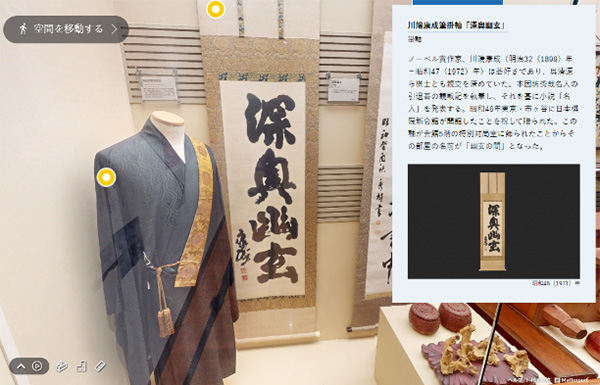 ※ VR用の機器は必要ありません。 - 実在の展示室を再現したVR空間を自由に散策、展示してある資料をVR空間で閲覧可能。