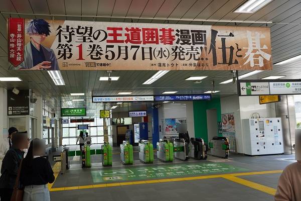 これを記念して、5月5日(月・祝)よりJR市ヶ谷駅構内に横断幕、そして日本棋院東京本院(市ヶ谷)にて、『伍と碁』のジャック広告を展開中です!!