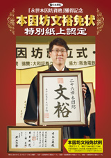 そこで日本棋院では、『永世本因坊資格』獲得の偉業を記念し『本因坊文裕免状』を発行することといたしました。本特別紙上認定にて合格点に達し、免状を申請される方は本因坊文裕揮毫特別免状を発行いたします。
