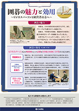 本委員会では囲碁の普及を進めるにあたり、その魅力と効用の明確化が必要との意見が出されました。これを受け、本委員会の潮田邦夫委員(技術経営士、元NTTドコモ常務取締役)が、 囲碁ファンである元経営者の方々に相談し、まとめて下さったものです。