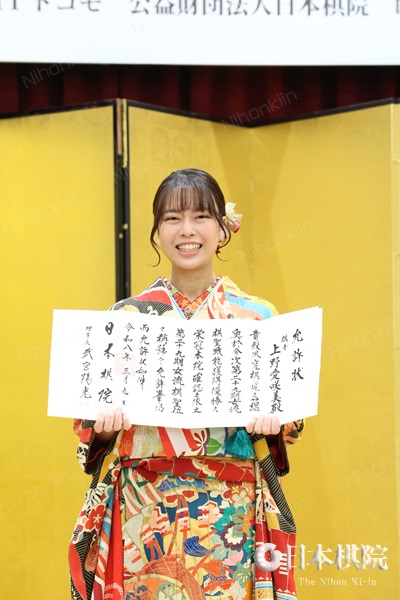 上野梨紗扇興杯との姉妹対決を制し、タイトルを奪還した上野愛咲美女流棋聖の第29期ドコモ杯女流棋聖就位式が3月9日(月)、東京都千代田区の「日本棋院東京本院」で行われた。
