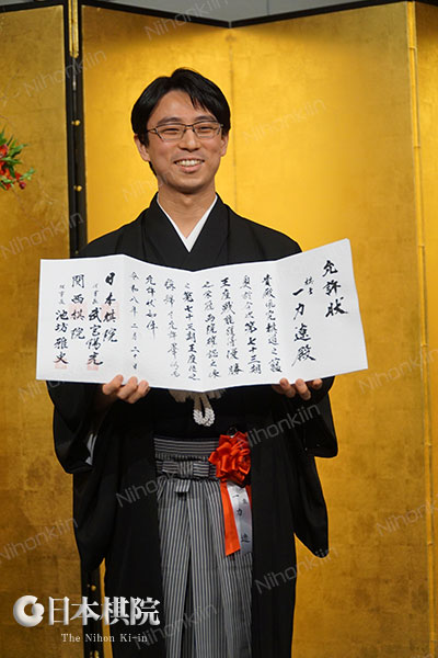 三度目の挑戦の末、井山裕太王座からタイトルを奪取し、囲碁界史上3人目の5冠を達成した一力遼王座を祝福する第73期王座就位式が、2月20日(金)に東京都千代田区の「パレスホテル東京」で行われた。これまで数々のタイトルを獲得してきた一力王座だが、王座は今回が初となる。
