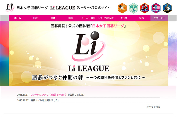 公益財団法人日本棋院は、「女子囲碁リーグ(愛称 Li LEAGUE)」の特設サイトを本日公開いたしました。