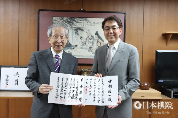 日本棋院は10月28日(火)、日本棋院東京本院(東京都千代田区)において、数理工学および情報幾何学の分野で世界的に知られる甘利俊一氏(東京大学名誉教授、理化学研究所栄誉研究員、文化功労者、文化勲章受章者)に対し、八段免状を贈呈いたしました。