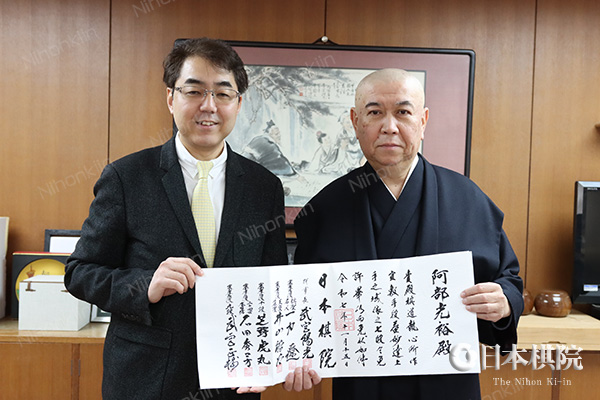 日本棋院は12月25日(木)、日本棋院東京本院(東京都千代田区)において、日本棋院福島県支部連合会会長および福島県支部支部長を務める阿部光裕氏に七段の免状を贈呈しました。