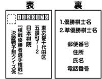 | ※ | ハガキでの応募において、優勝者・準優勝者の順が不明の場合は、最初に記名されている棋士名を優勝者とします。 |