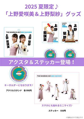 - 上野姉妹グッズのほか、Tシャツ・ハンドタオル・ステッカーなど、夏にぴったりのアイテムを多数ご用意しております。