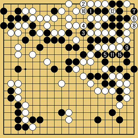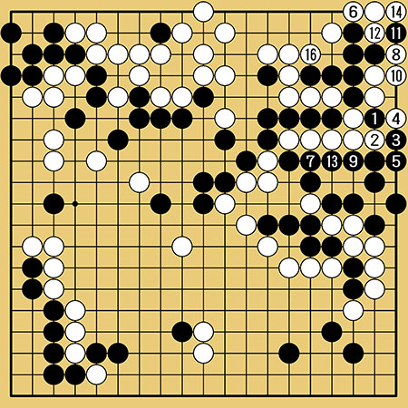 黒1から攻め合うと白16までコウになりますが、これは白の花見コウです。